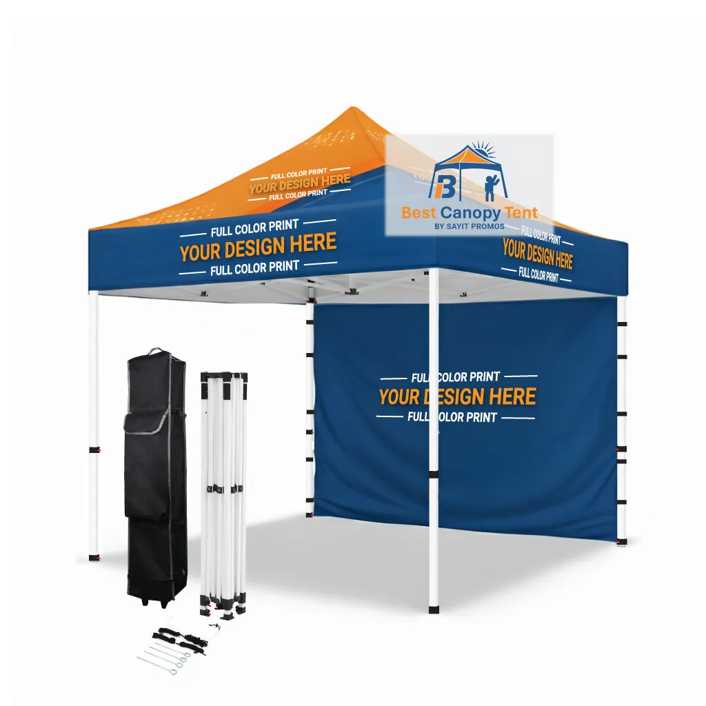 Choose this 10×10 canopy kit with full back wall when you want a more polished booth setup with added coverage and stronger branding. It’s a practical choice for markets, festivals, trade shows, and promotions where a defined backdrop can help your display look cleaner, more professional, and easier to manage.