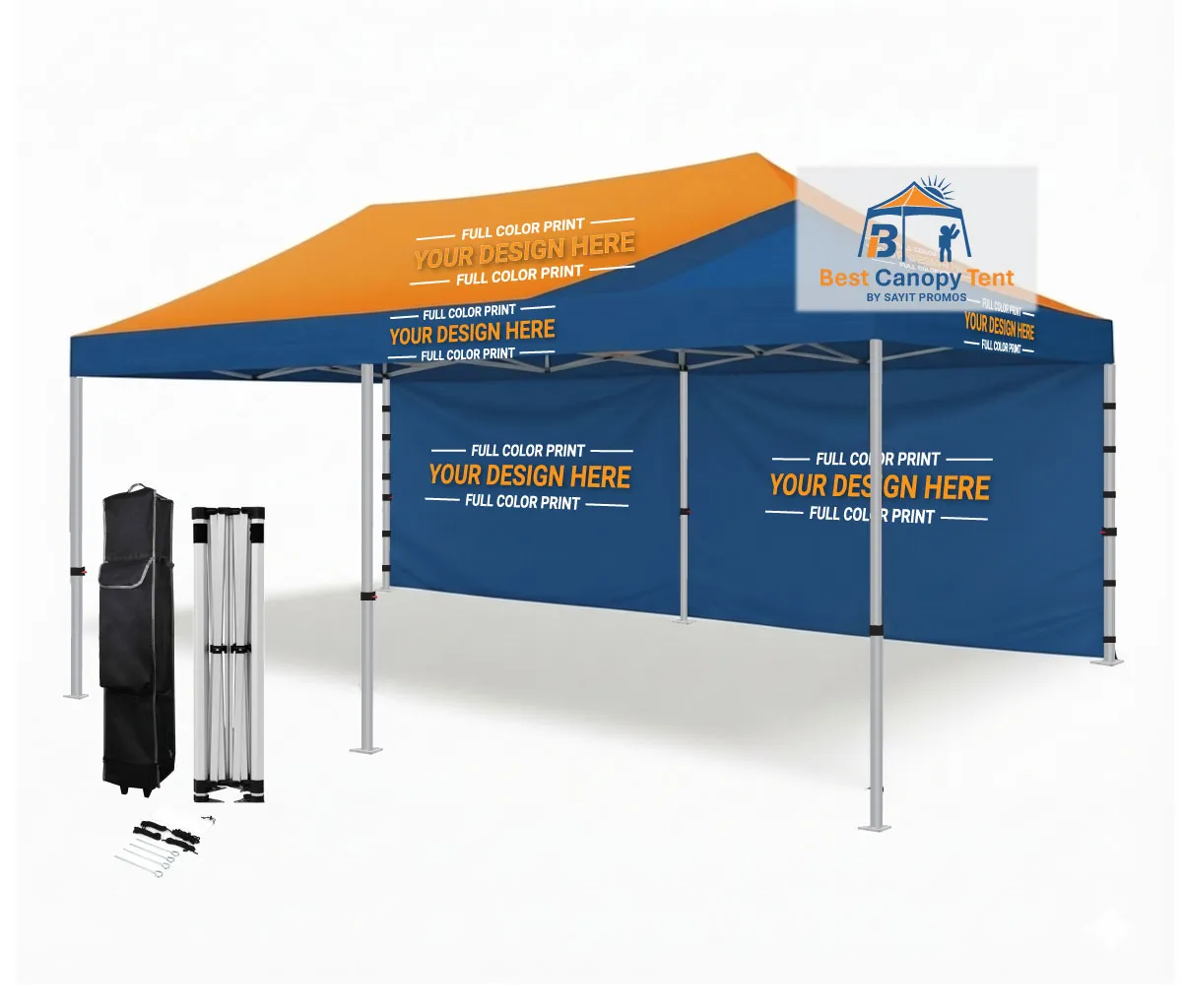 - 10′ x 20′ full color custom printed premium 600D canopy