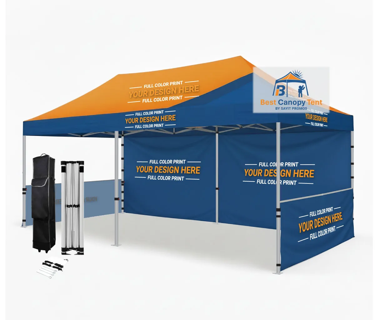 - 10′ x 20′ full color custom printed premium 600D canopy