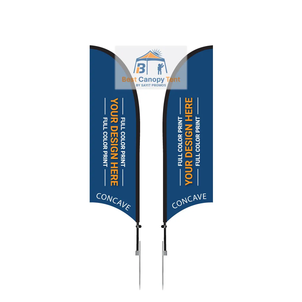 This kit is designed to be easy to set up, easy to move, and hard to miss. Your flag is printed in full color on both sides, then paired with a durable fiberglass pole, spike base, and carrying bag so you can deploy it quickly at markets, festivals, promotions, and sporting events. You can also choose the flag shape that best fits your brand style: straight, angled, concave, or convex.