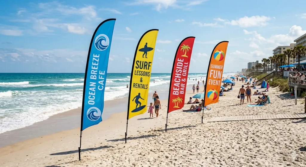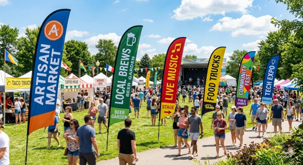 This 11 foot custom feather flag kit is designed to be seen from a distance and above crowds—making it a strong choice for busy events and outdoor promotions. Because it’s printed double sided, your message stays readable whether customers approach from the front or the back side of the flag.