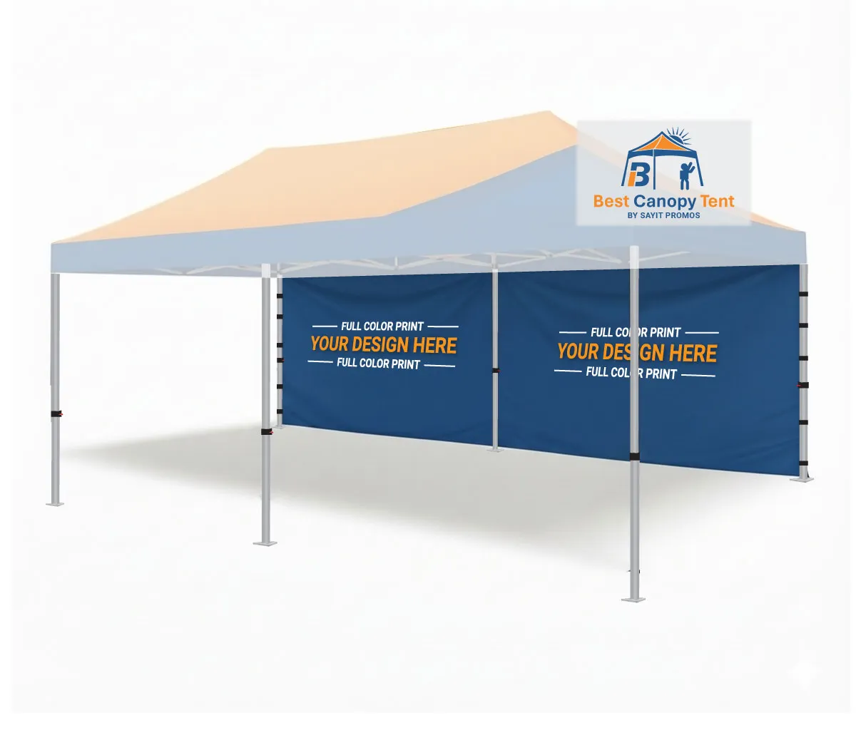 - 20′ x 7′ full color (1-side) custom printed tent wall